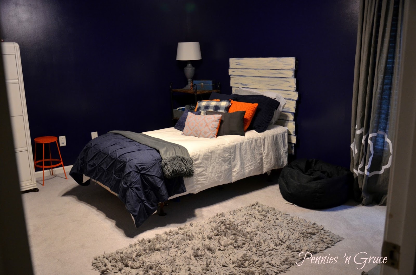 His lego collection continues to grow, and he loves displaying his creation. We talked about maybe making more pallet shelves in his closet and getting rid of the ugly desk.