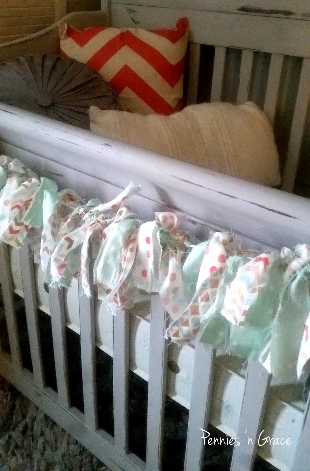 Chloe helped me make this cute cloth banner that we draped over the crib front with our coral and mint accents.