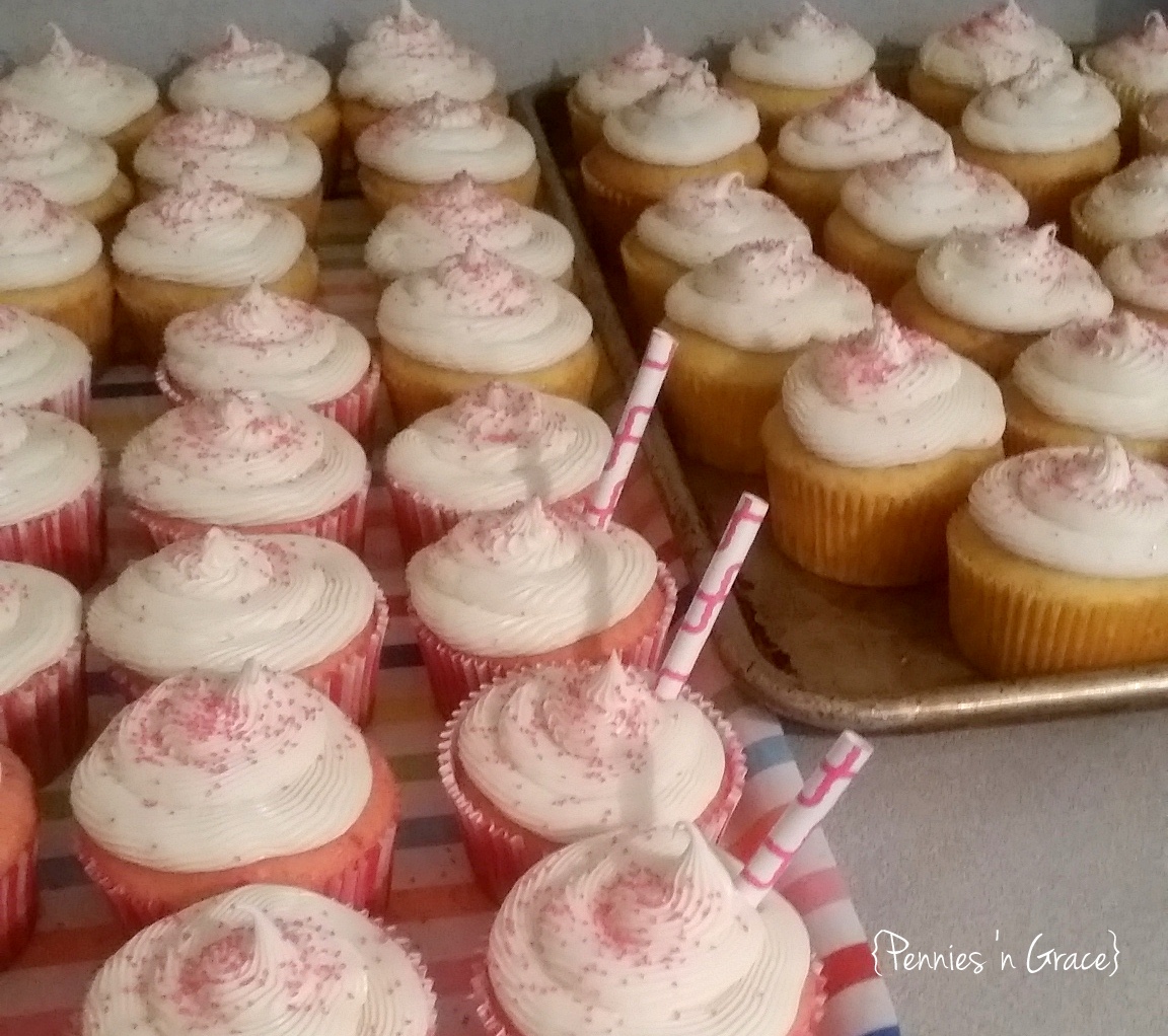 I used my Penny Pinchin’ Sign display for the cupcakes. I just had to turn the banner around and use pink chalk for the “cupcake” part.
