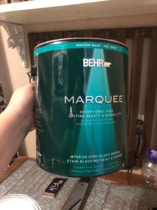 I actually did not spend a cent on my paint for this project! How amazing is that?! A dear friend gave me a few gallons of paint when we moved into our new house. I just had to take them to Home Depot and get them tinted the color I wanted. This was my last gallon, but came at a perfect time allowing my budget to not get touched for this challenge.
