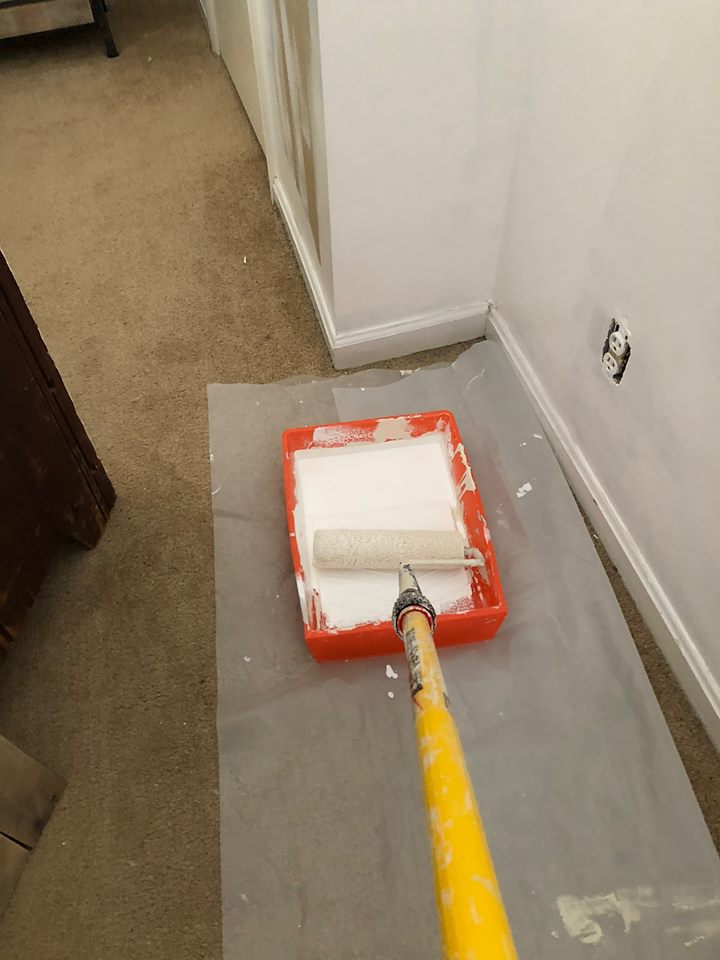 I just moved everything into the middle of the room or up against the wall behind the bed because I didn’t want to waste the paint on that far wall. Next week’s post will show you why!