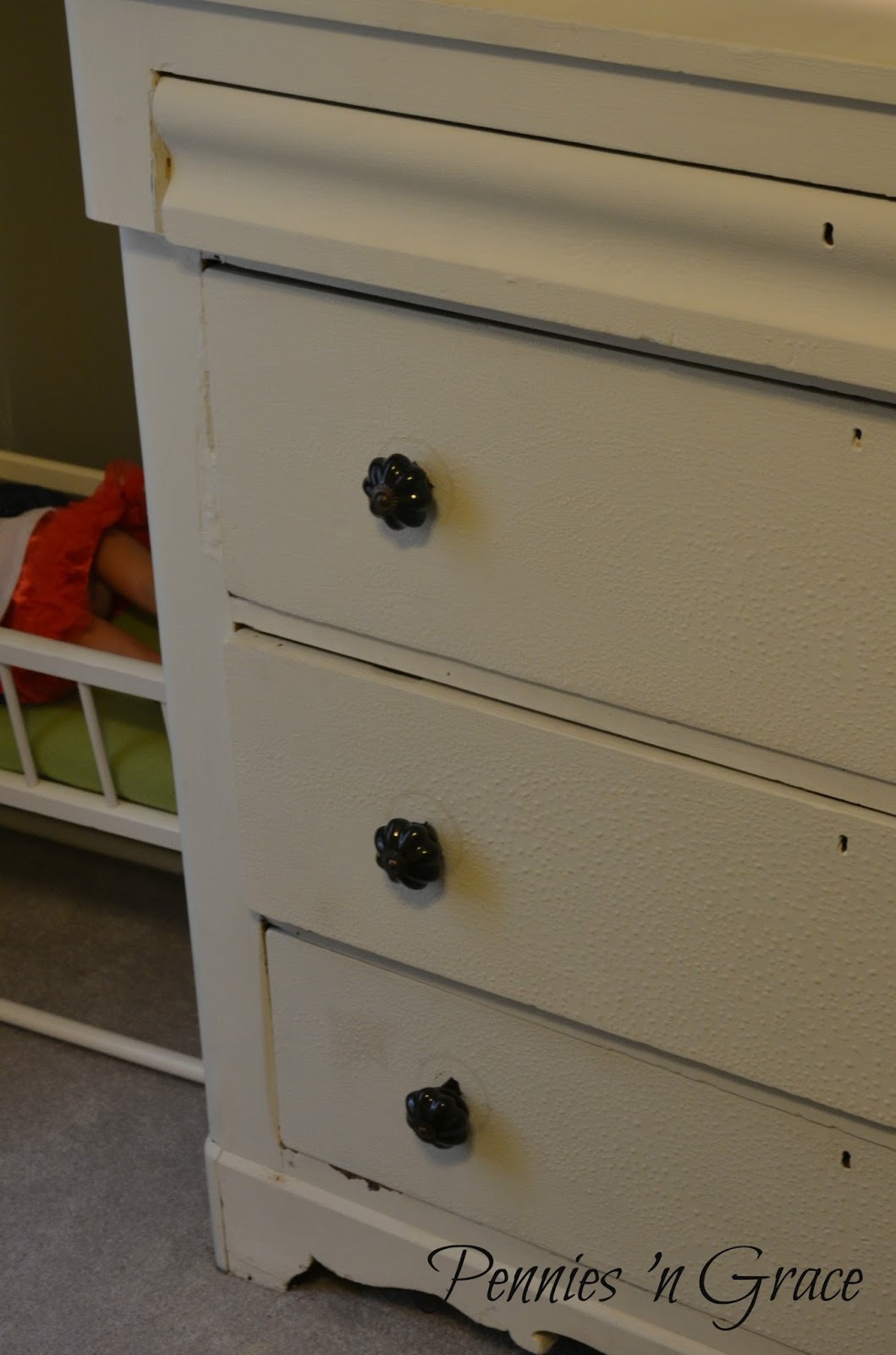 Due to ever increasing traffic in the girl’s room and a few handles having been knocked off and lost in our move, this dresser needed some TLC.