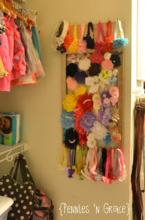 The chunky little clothespins worked perfect to clip the remaining headbands or bows to the wire.