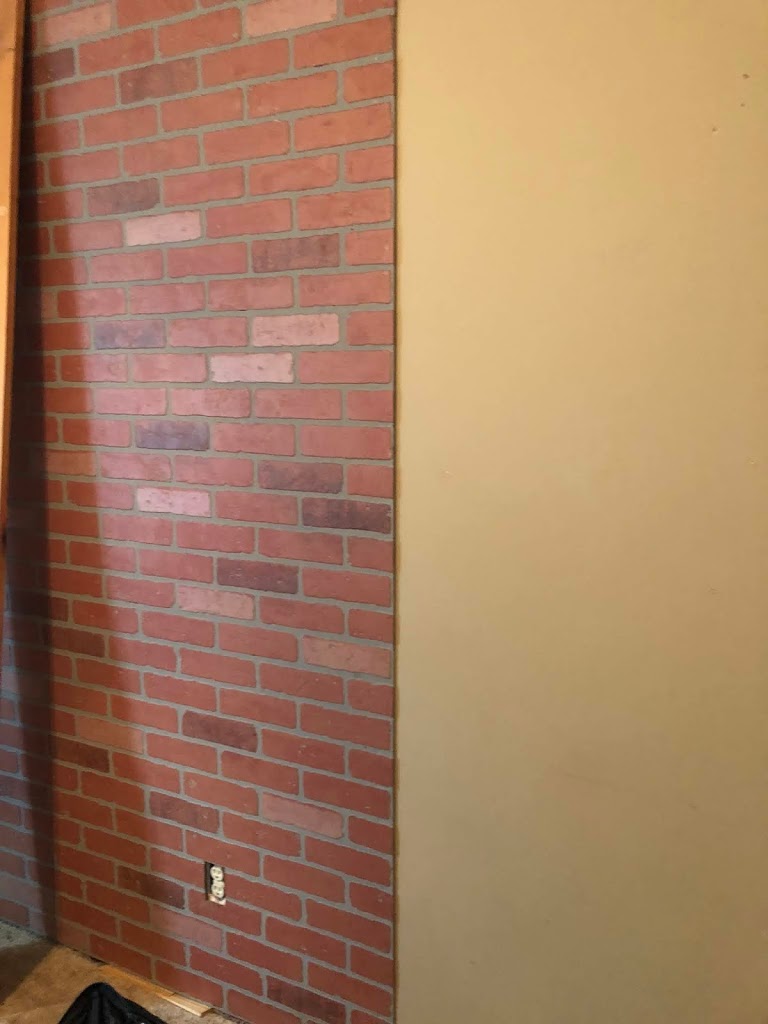 My sweet six year old took a trip to Home Depot with me and picked out 3 panels of our brick paneling. We had a time trying to get them to fit into our van, but we made it work.