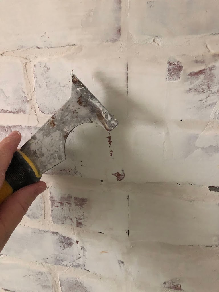 The following morning, I set to work covering the remainder of the wall. I loved the fact that there is not right or wrong way in doing this process. You can slap on as much as you desire, scrape off if too much, and sand to get the look you desire.