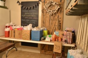 I printed out flyers for all the ladies to know exactly what the activity was and rules to go by. I also created an event in Facebook to help make sure I could see how many planned to attend. Many parties do different price values or number of gifts, but I had each lady bring 3 of the same gifts not costing more than $5 each. I didn’t want to burden anyone with finances, but figured one could do lots with $5. I absolutely loved how our ladies came through in this way. There were fantastic gifts brought. I wish I had gotten lots more pictures, but next year I will be sure to have another lady snapping pictures throughout the party.