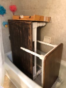 An 8 foot table just fit in my kitchen so it was sort of out of the way and didn’t block traffic anymore in my little house. Don’t ask if I could open my fridge. 😏